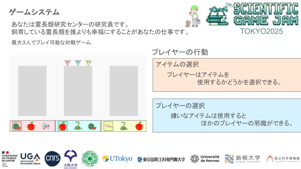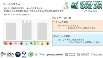 本作は2025年11月14日から11月16日まで開催された、第2回Scientific Game Jam Tokyoで制作 されました。